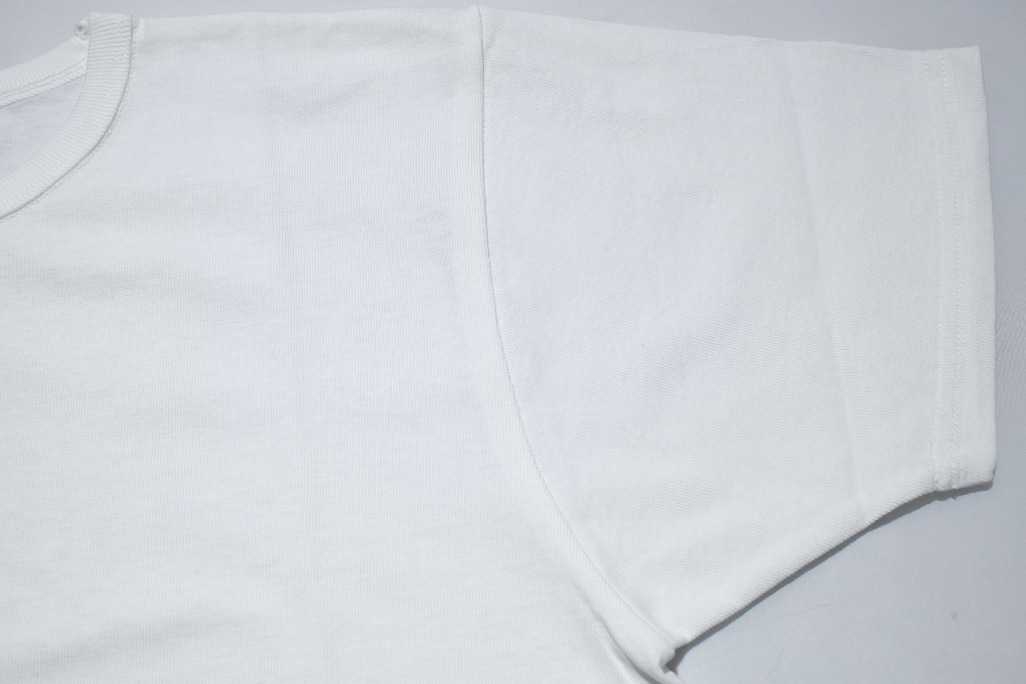 We have introduced a double folded, triple stitched collar. The ultimate for holding it's shape over long time wear. Due to being made on super slow loopwheel machines our larger sizes (42 and 44) feature cut & sewn side seams... of course using true Union Special flat seaming. This makes for a much better fitting for bigger sizes.